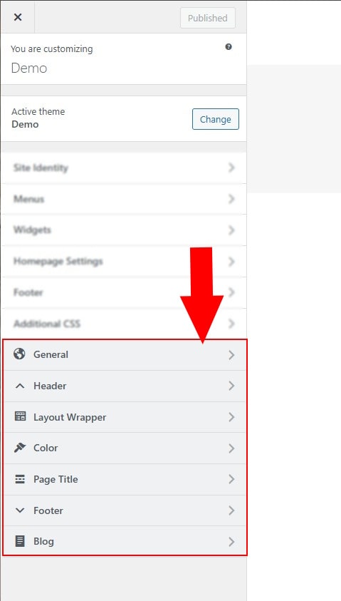Landup comes with an advanced setting panel that is loaded with options. We have the options organized into logical tabbed sections, and each option has a description of what it will do on the front end. Because of the sizable amount of options Landup provides, we cannot go over them in full detail here in our documentation. We encourage you to please take some time and navigate through each tab to see what we offer. Go to Appearance >> Customize in the Dashboard on admin sidebar to access the setting options.