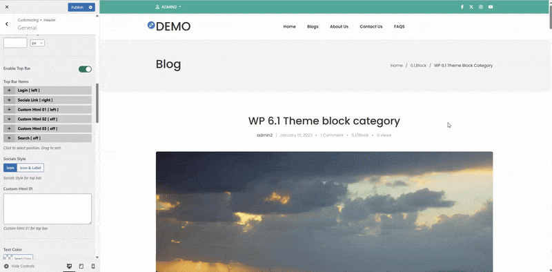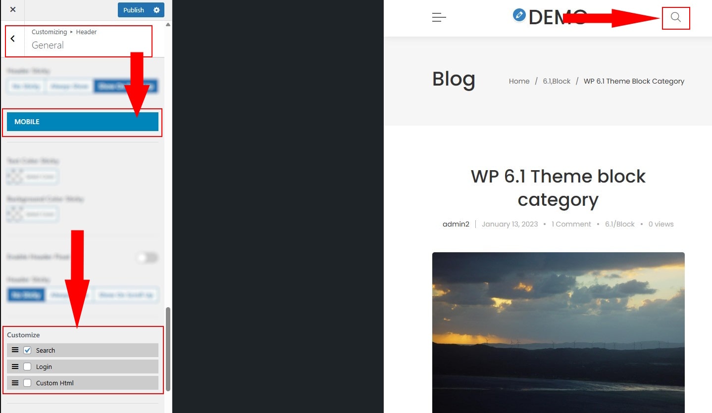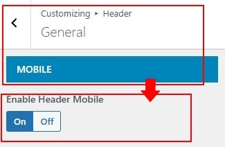 - In Dashboard Admin, Navigate to: Appearance » Customize » Header » General