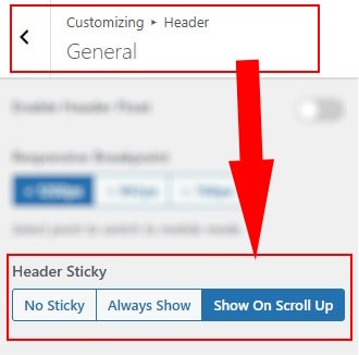 You can choose mode: Always Show, Show On Scroll Up or turn off Header Sticky